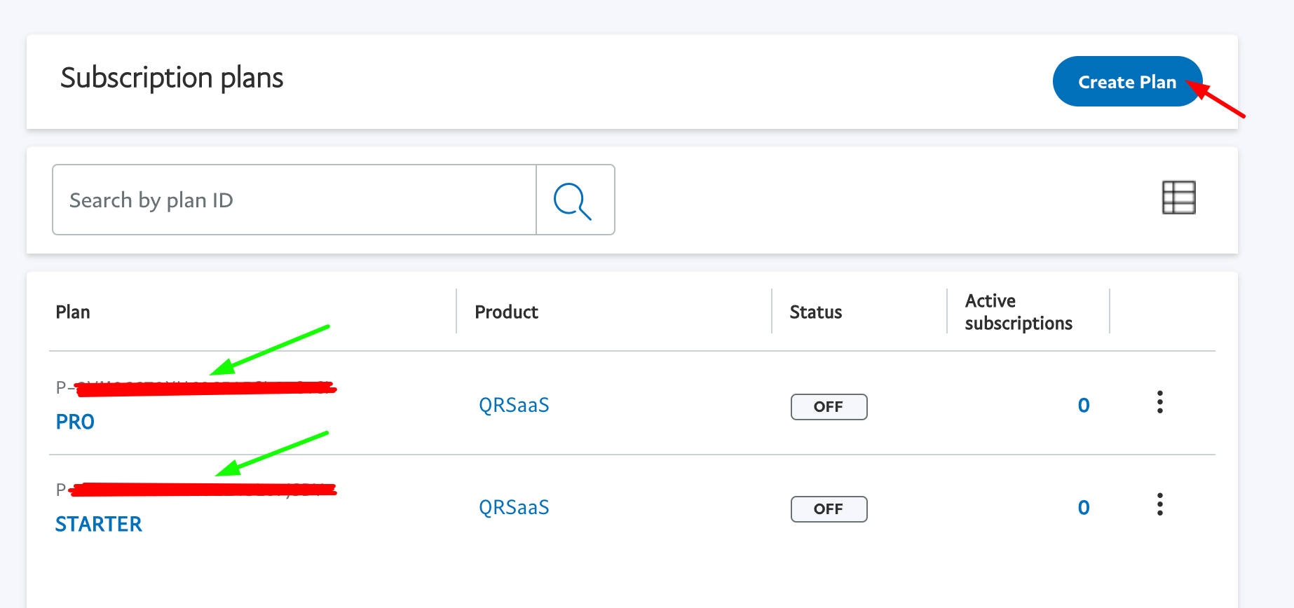 You will see the option for creating new plans. Create your billing plans and then fill the plans information in your admin panel (Pricing plans).