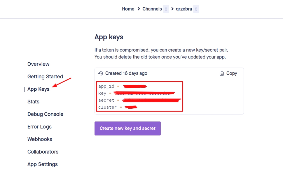 Click on your channel that you have created and after that select App Keys. The credentials will be auto generated.