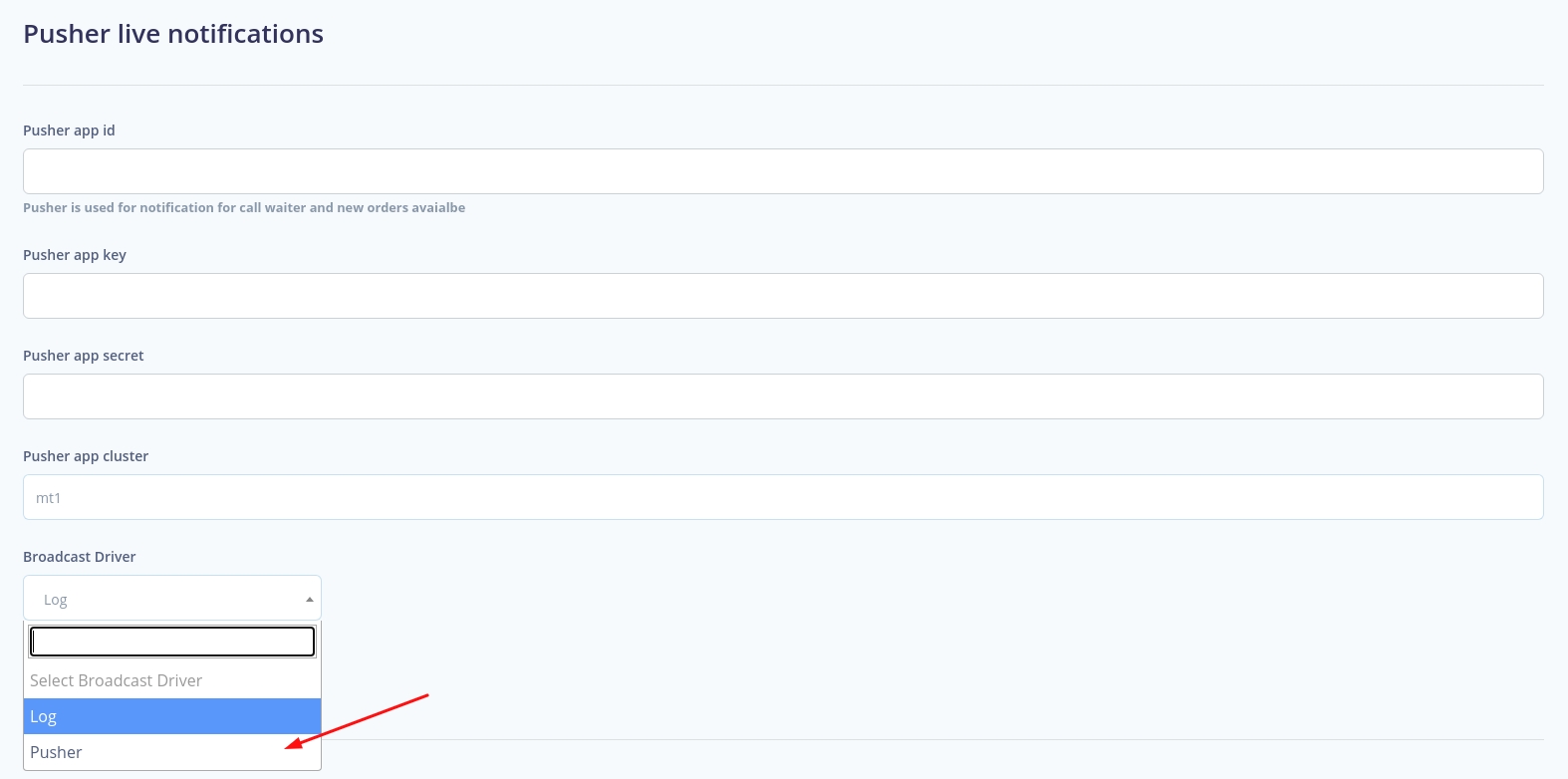 From the version 1.8.0 we support Pusher for sending real time notifications for new orders and call waiter option. To setup the plugin follow these steps: