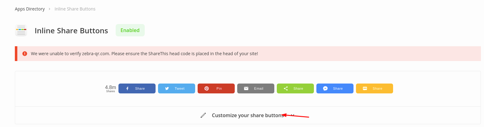 Select your domain that you added and enable from the tools Inline Share Buttons.