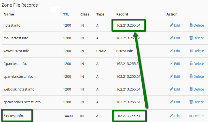 Now, you will need to wait until the propagation is over (it should take N seconds, where N – is TTL for this A record; you can edit it manually and reduce the number to speed up the process), and then the wildcard subdomain will work correctly.