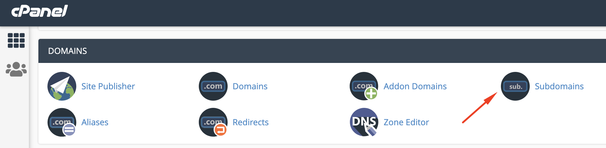 Navigate to Domains section > Subdomains menu:
