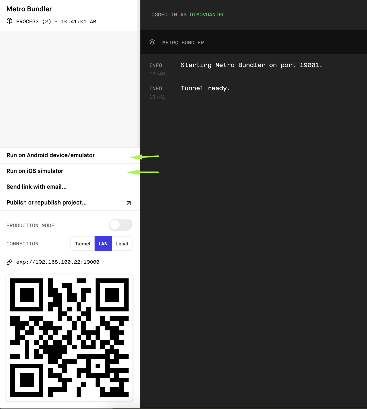 This option will start your app locally. It will open the browser, and you will have the option to run on a device or simulator. You can see your app, take screenshots and if you don't like some image you can change in assets/images and in App/images.